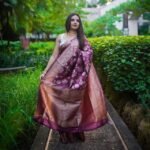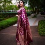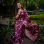 Attractive Wine Color Floral Printed Banarasi Soft Silk Saree – Thepinkjewellery