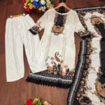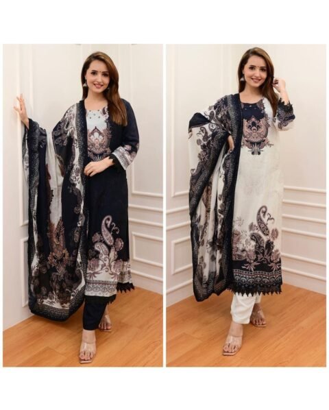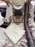Pakistani Suit which is beautifully decorated with digital prints, sequin embroidery and lace detailing’s all-over. It is absolutely perfect for your upcoming occasions, it is very easy breezy and comfortable.