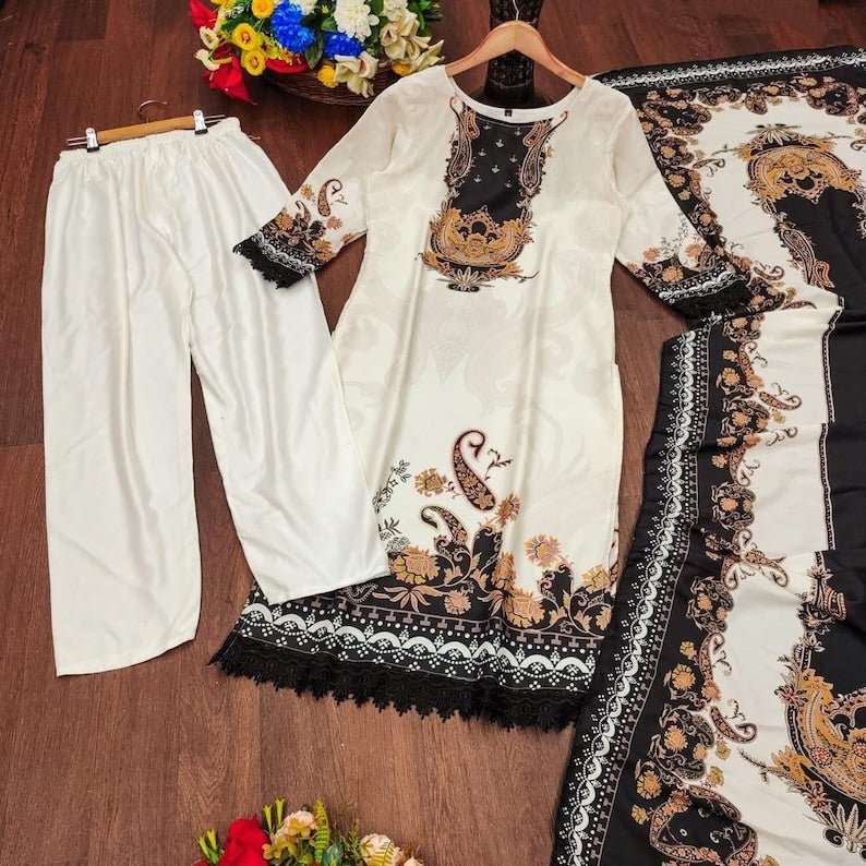 It comes with lining!Inclusive: Top, Bottom & Dupatta